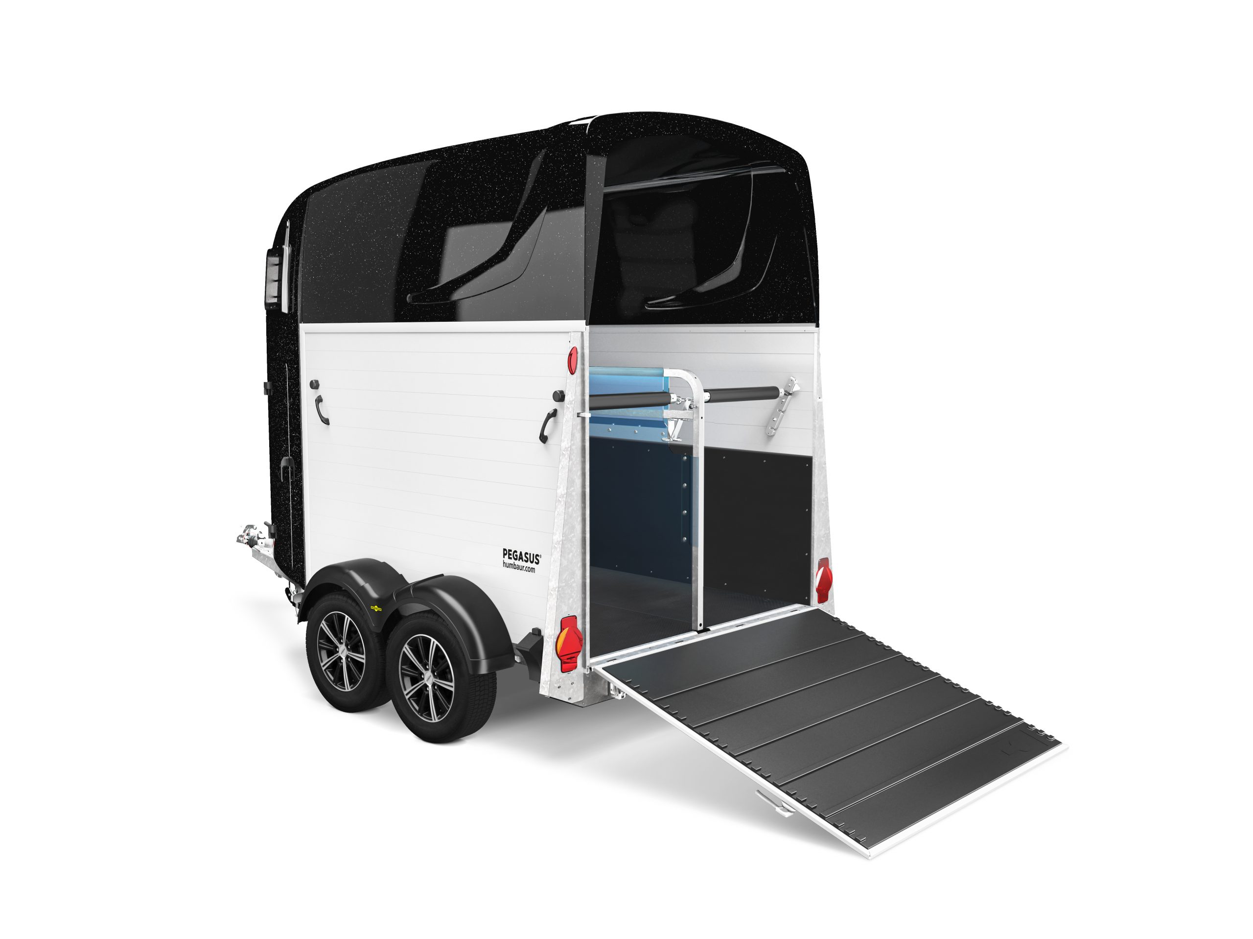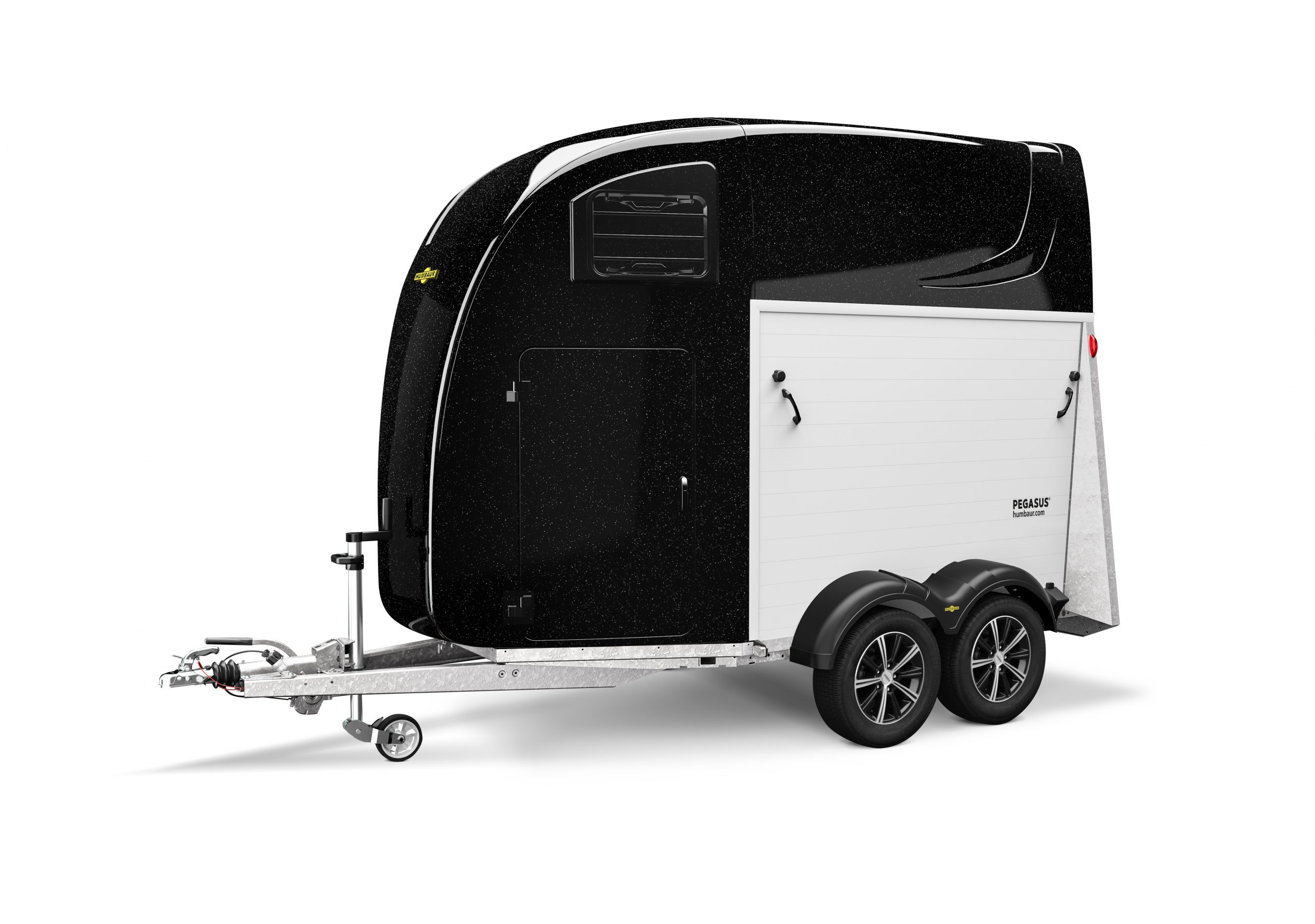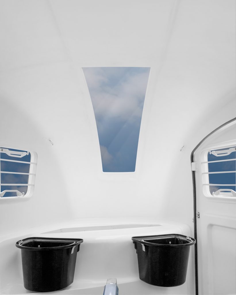 • Abschließbare Sattelkammer mit ausziehbarem Sattelhalter, Trensenhalter,Spiegel, Netz, Innenbeleuchtung, Schaufel und Besen