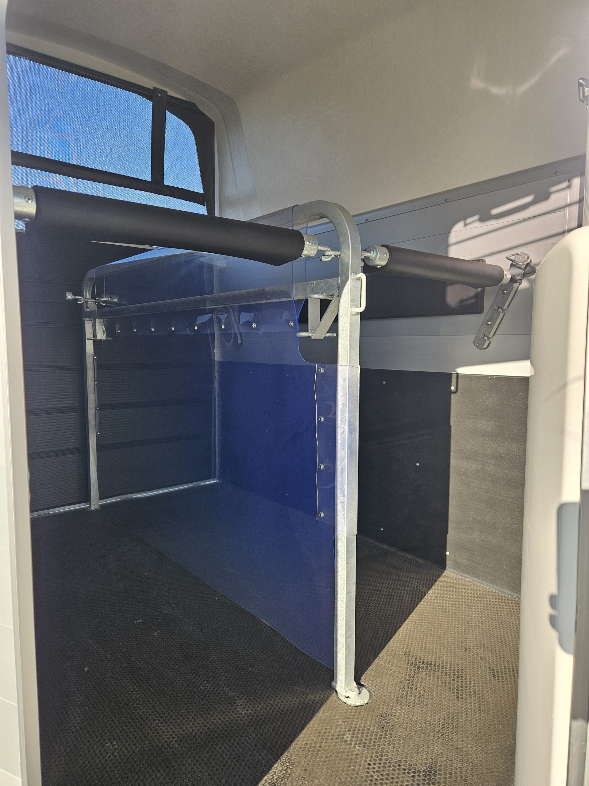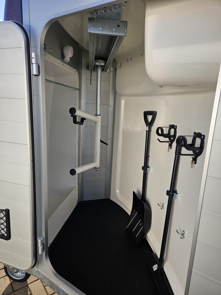 - Abschließbare Sattelkammer mit Sattelhalter, Trensenhalter, Speigel, Netz, Innenbeleuchtung, Schaufel und Besen